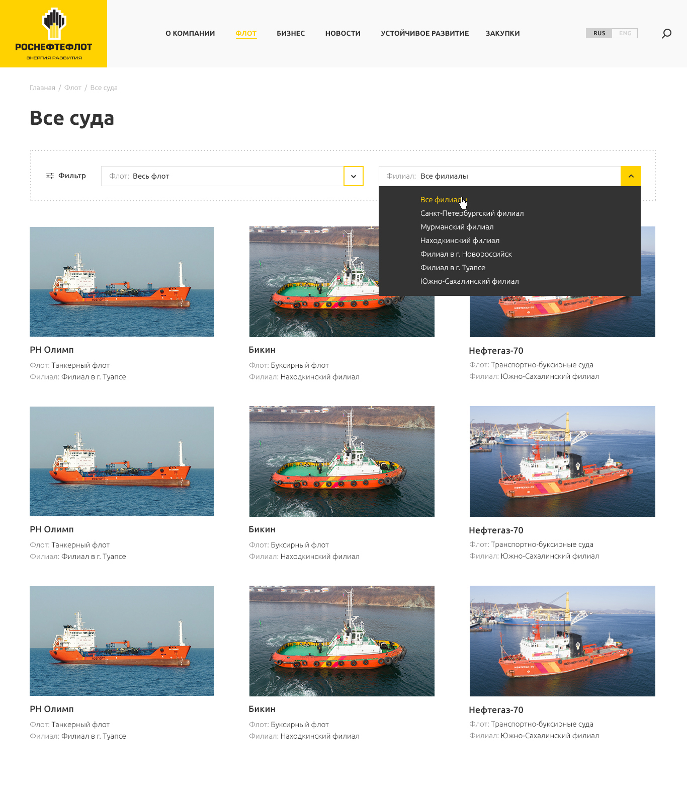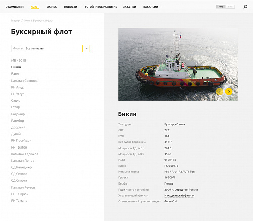 На сайте представлены полный каталог судов флота, новости компании и отрасли.