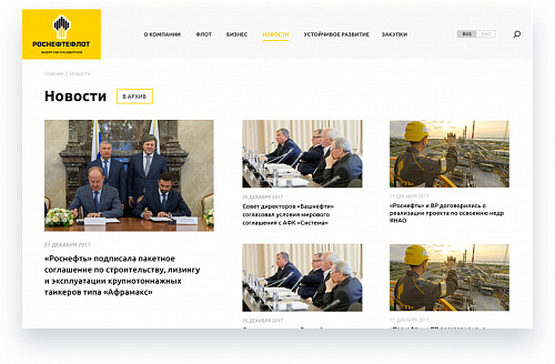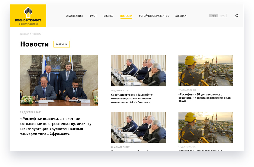 Разработка корпоративного сайта «Роснефтефлот» была для нашей компании настоящим вызовом, так как стояли очень сжатые сроки по проекту, а ведь это была индивидуальная разработка. В итоге нам удалось запараллелить весь процесс разработки, создавая раздел за разделом от проектирования до программной реализации и наполнения контентом.