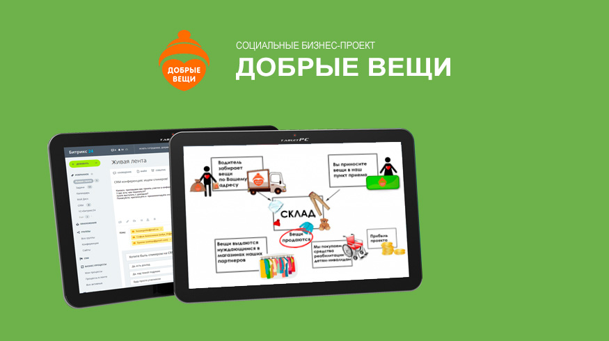 Социальный бизнес-проект «Добрые вещи» был основан в феврале 2016 года. Проект начался с адресной помощи детям с ограниченными возможностями: государственные центры реабилитации предоставляли нам данные по детям, которые нуждались в специальных тренажёрах, креслах, корсетах и других средствах реабилитации. По мере развития проекта круг тех, кому оказывается помощь, расширяется.