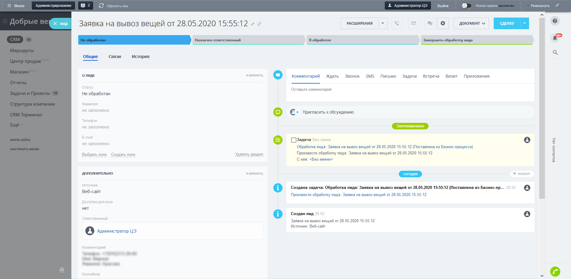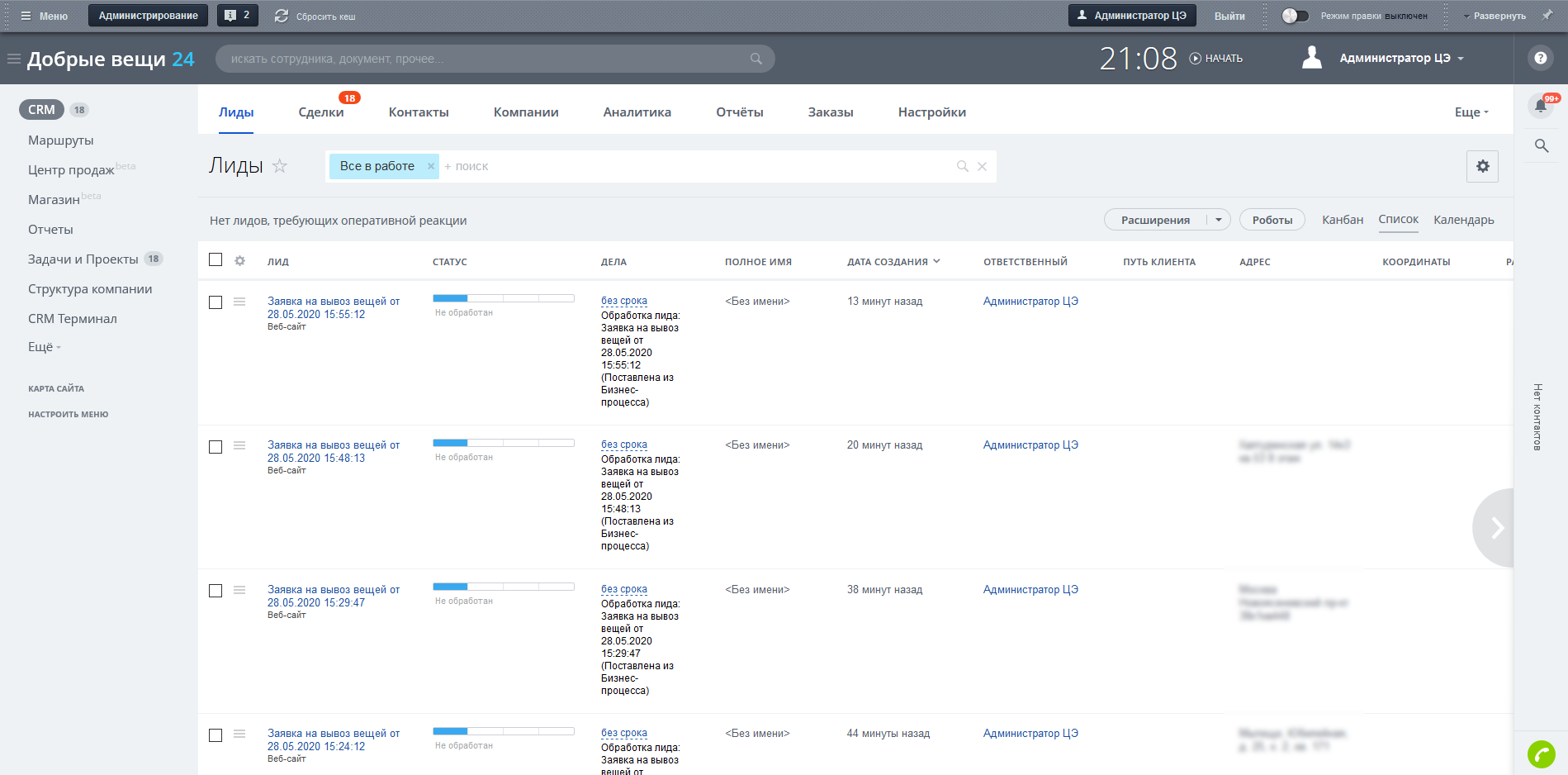 • Вести все заявки на вывоз вещей в одной системе.