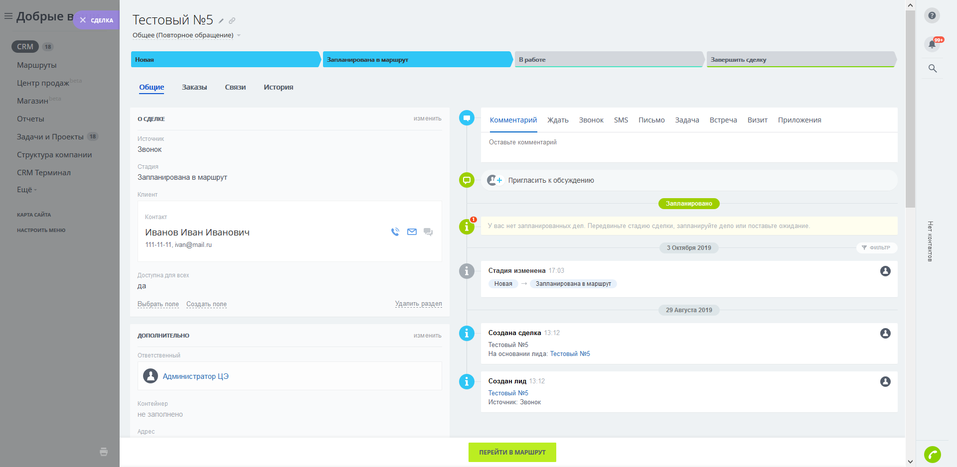 • Создание сделки