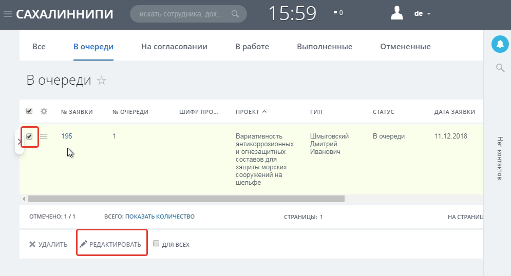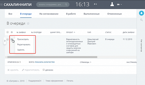 Запрос на результат работ -